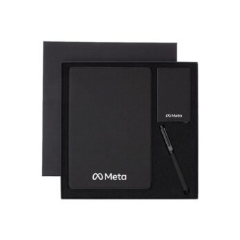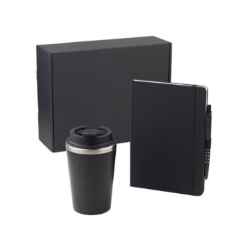 Sustainable Gift Set containing a GRS-certified recycled PU refillable A5 ruled hardcover notebook and a matching recycled PU ball pen. Elegantly design, and sustainable by nature.